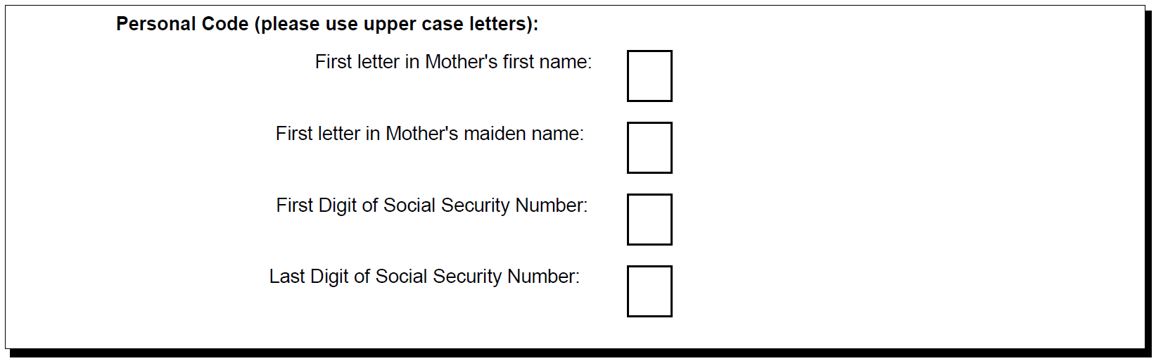 Please print clearly in the boxes below using blue or black ink. Print only one number or letter in each square. Upper case letters only.
