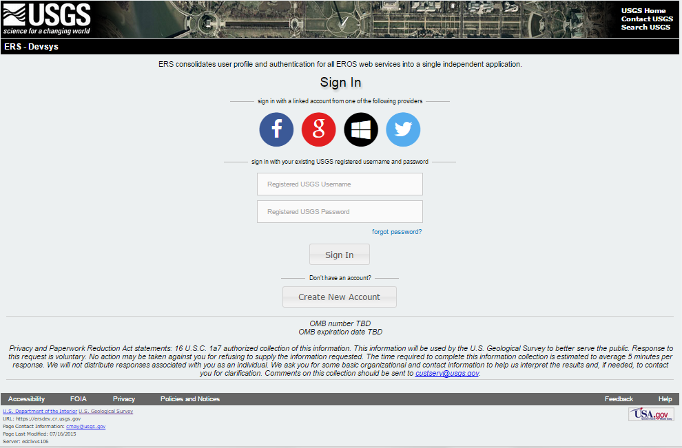 Screen shots from Earth Explorer in a browser