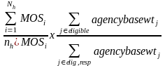 Where MOSi is the age 0-17 pop for the i-th PSU, Nh is the number of PSUs in the stratum on the frame, and nh is the number of PSUs sampled in stratum h. The numerator of the nonresponse adjustment factor is summed over the eligible agencies within the nonresponse adjustment cell, and the denominator is summed over the eligible responding agencies in the cell. The nonresponse adjustment factor distributes the agency base weights of the eligible agencies that refused or did not respond to the eligible agencies within the same region/size class who did respond. The final agency weight is zero for nonresponding agencies, and is equal to the agency base weight for ineligible agencies.