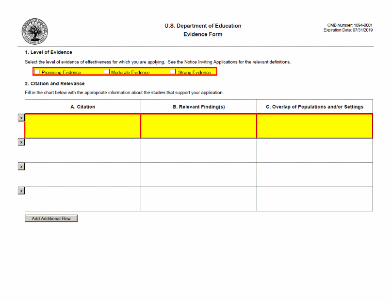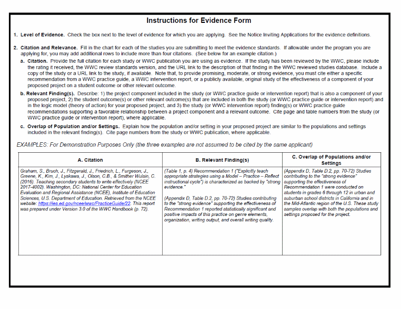 Part V: Evidence Form
