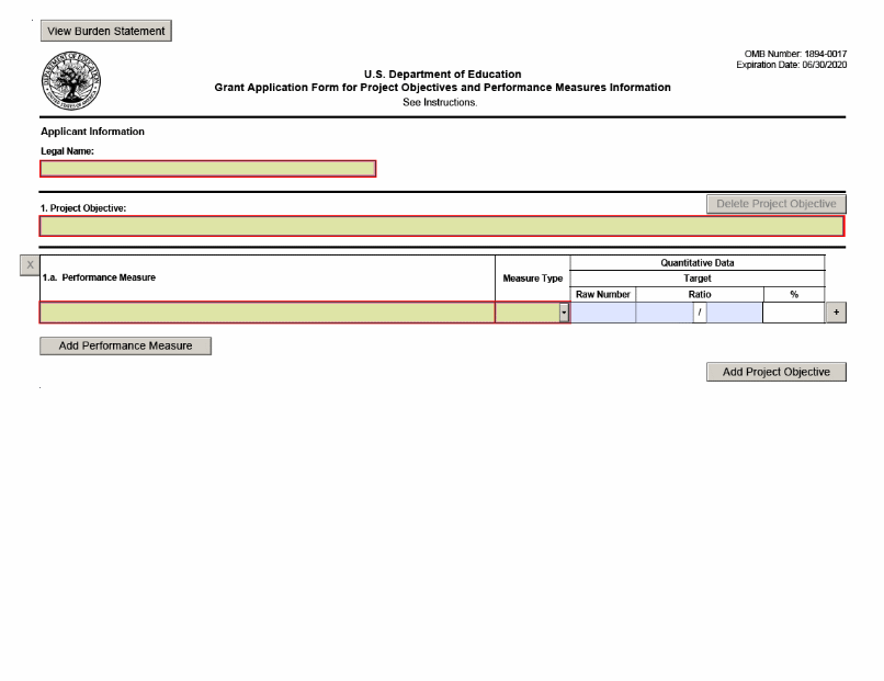 Part IV: Grant Application Form for Project Objectives and Performance Measures