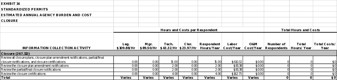 40 CFR part 267, subpart G (sections 267.110 through 267.117) requires owners and operators to develop closure plans, amend these plans when appropriate, and submit to EPA closure certifications. EPA reviews information in the closure plans to determine whether closure activities will comply with the regulatory requirements. EPA uses information in the closure certifications to determine that closure took place in accordance with the approved closure plan.