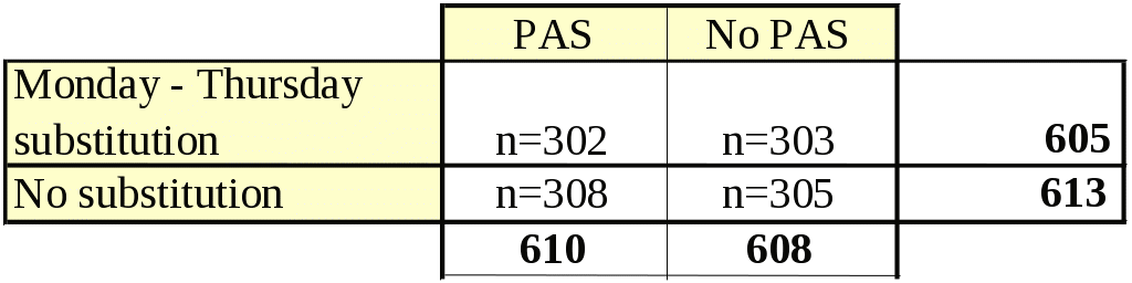 PAS was used to call a respondent on any day of the week to make an appointment to conduct the interview on the next eligible interviewing day. Because of the limited number of days to contact the Designated Person, PAS increased the chances of contacting the respondent. The counter method to PAS was calling a respondent only on an eligible interviewing day. This is called No-PAS.