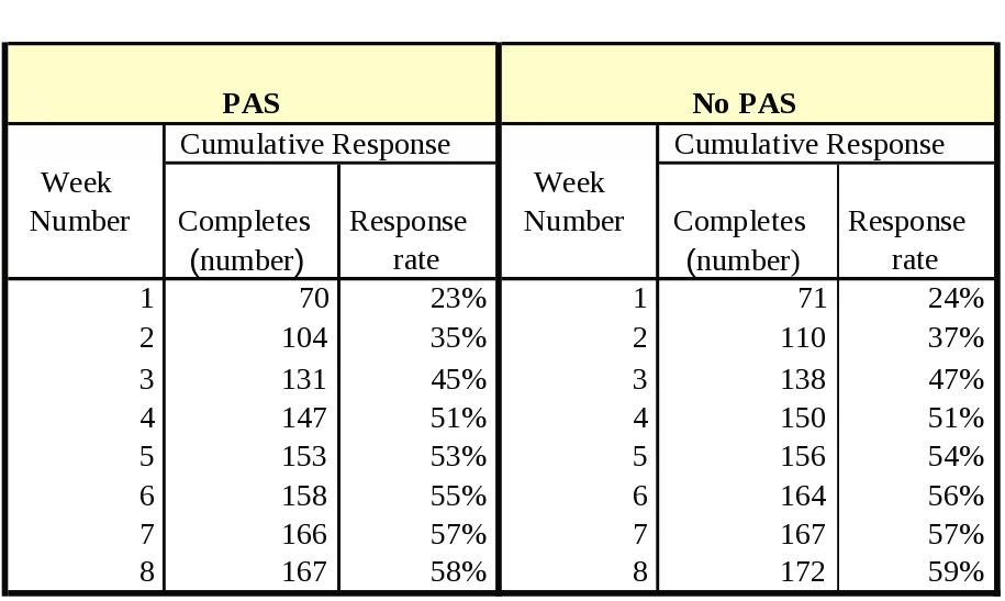 Table 5: Cumulative Response Rates – PAS versus No PAS
