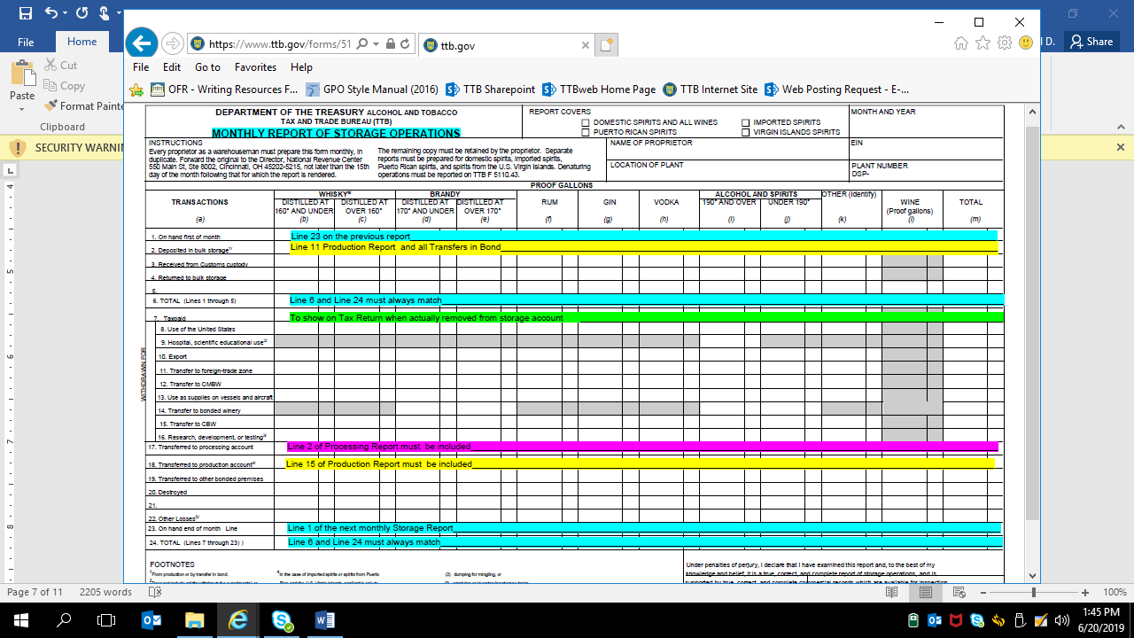Instructions and Tutorial for TTB F 5110.11, Monthly Report of Storage Operations, posted to the TTB website form’s page at http://www.ttb.gov/forms/ index.shtml.