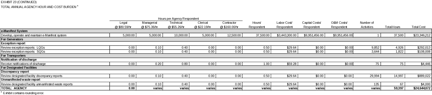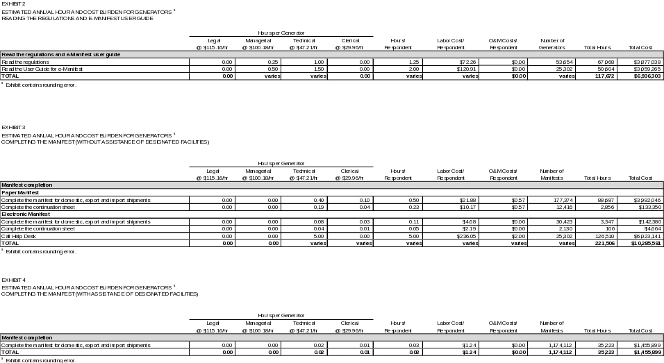 45 This ICR does not burden receiving facilities manifesting state hazardous waste (paper or electronic) for reading the regulations. Such facilities perform this activity because of state-specific, broader-in-scope program requirements in the absence of federal requirements to do so.
