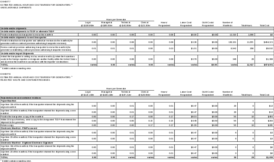 21 The manifest estimates in Table 7 are consistent with the estimates in Table 6 for the manifest cycle. The purpose of Table 7 is to show the number of manifests for domestic or transboundary shipments.