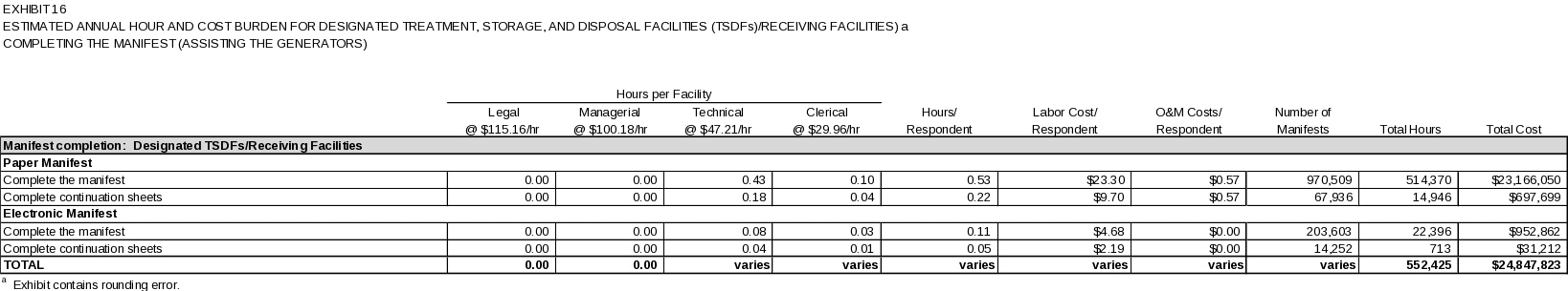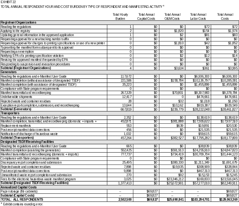 16 Refer to Table 5 for EPA’s estimate of the adoption rate for electronic manifesting.