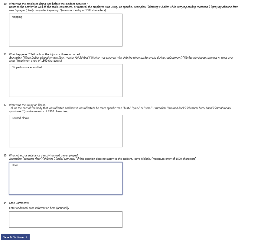Alternative section 3 and case screen for if establishment has to report case details for days of job transfer or restriction cases in addition to their days away from work cases: