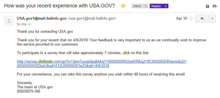 NOTE: Surveys for Chat and E-mail customers are exactly the same except for asking about a chat or an e-mail exchange.
