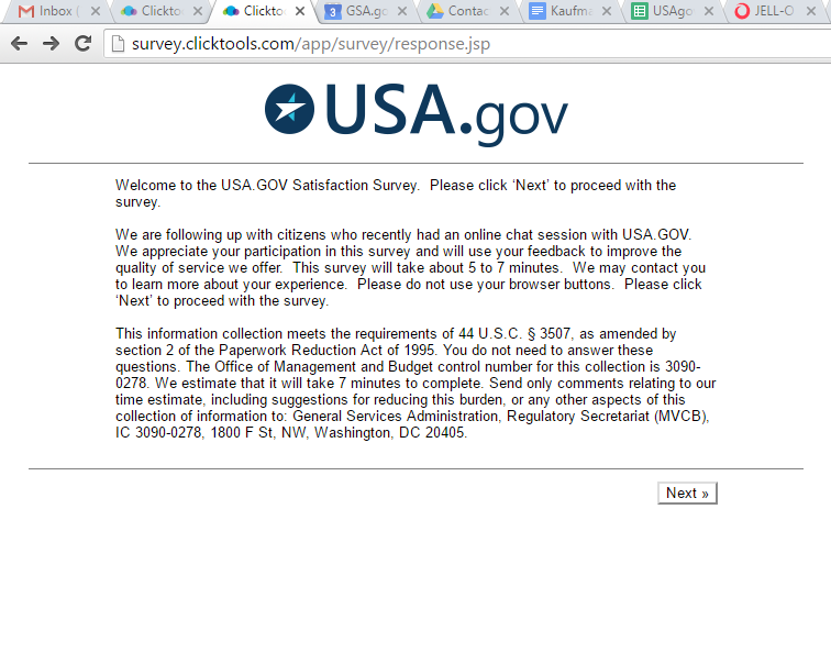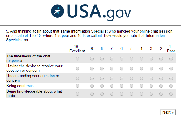 USA.gov Contact Center Web Chat Customer Satisfaction Survey