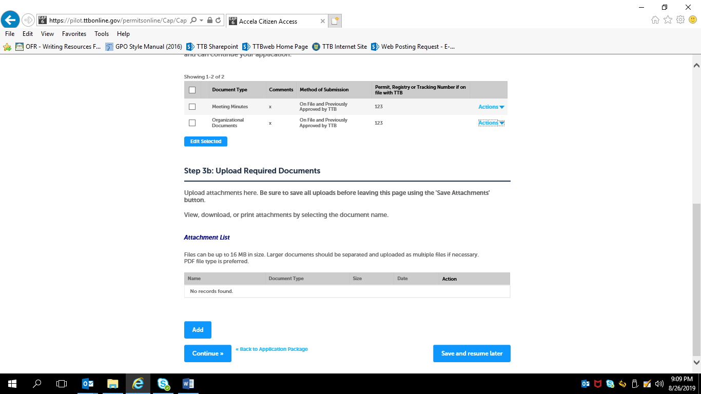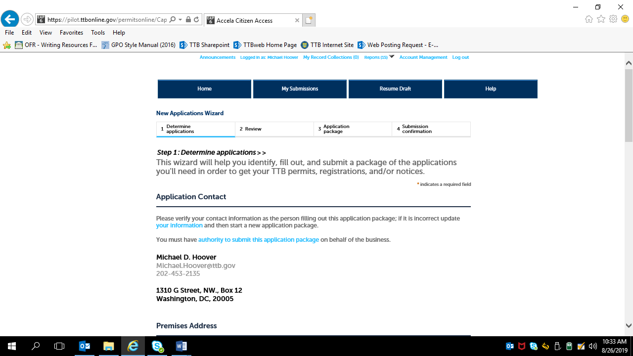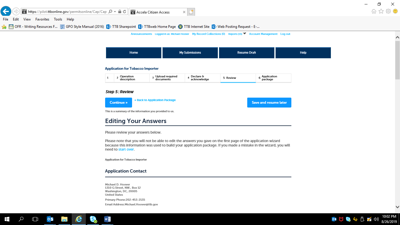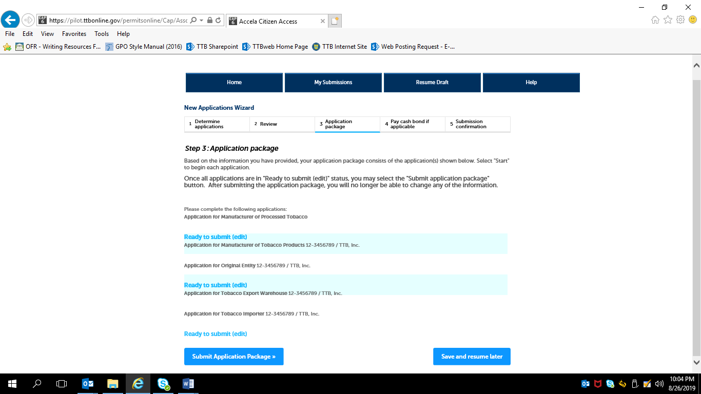 After review, the applicant is returned to the Step 3, Application Package, of the Common Screens. If only one type of permit is applied for, the applicant is taken to the Step 5, Submission Confirmation, screen.