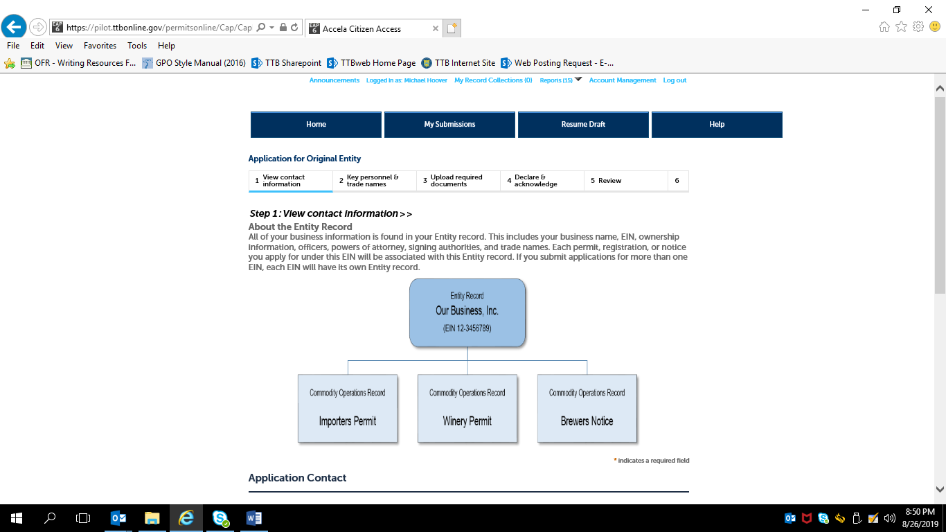 1 When using PONL, entities that hold no TTB permits of any kind are required to complete an “Original Entity” application in addition to the Common Screens and the activity-specific application. Entities that already hold at least one TTB permit will not have to complete an Original Entity application.