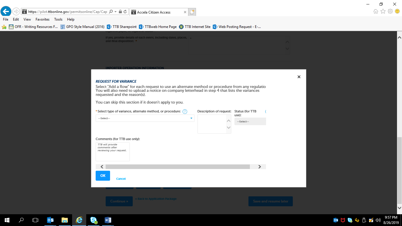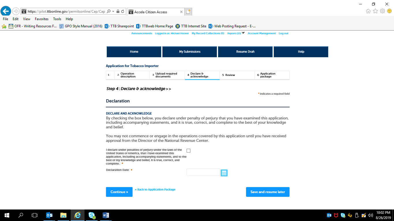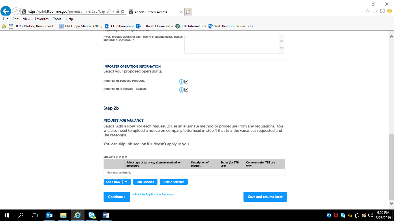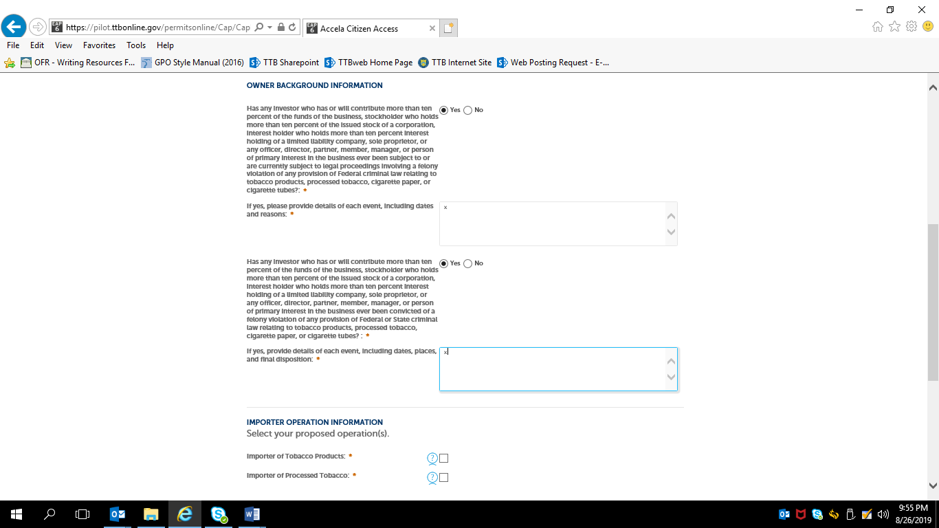 PONL 5.0 – New Tobacco Importer Permit Application Screen Shots – August 2019