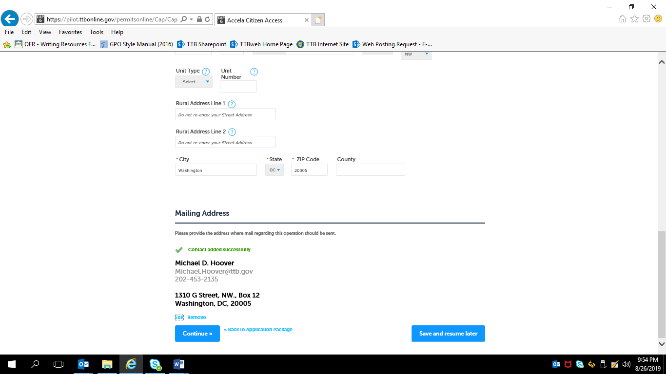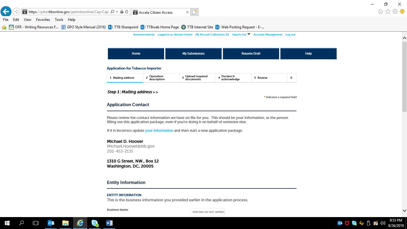 Step 1: Mailing Address Screens (These screens are the same for all new types of new tobacco industry permits) —