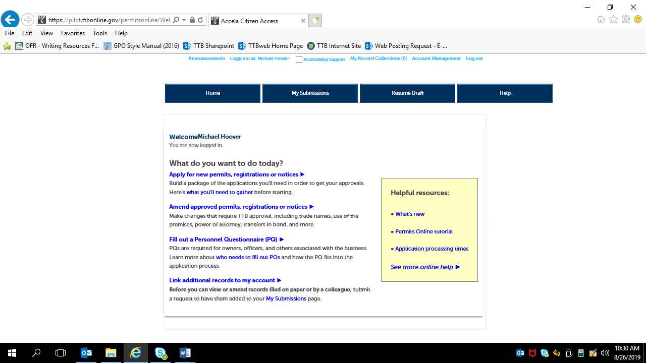 PONL Log-in Screen — (https://www.ttbonline.gov/permitsonline/Default.aspx) —