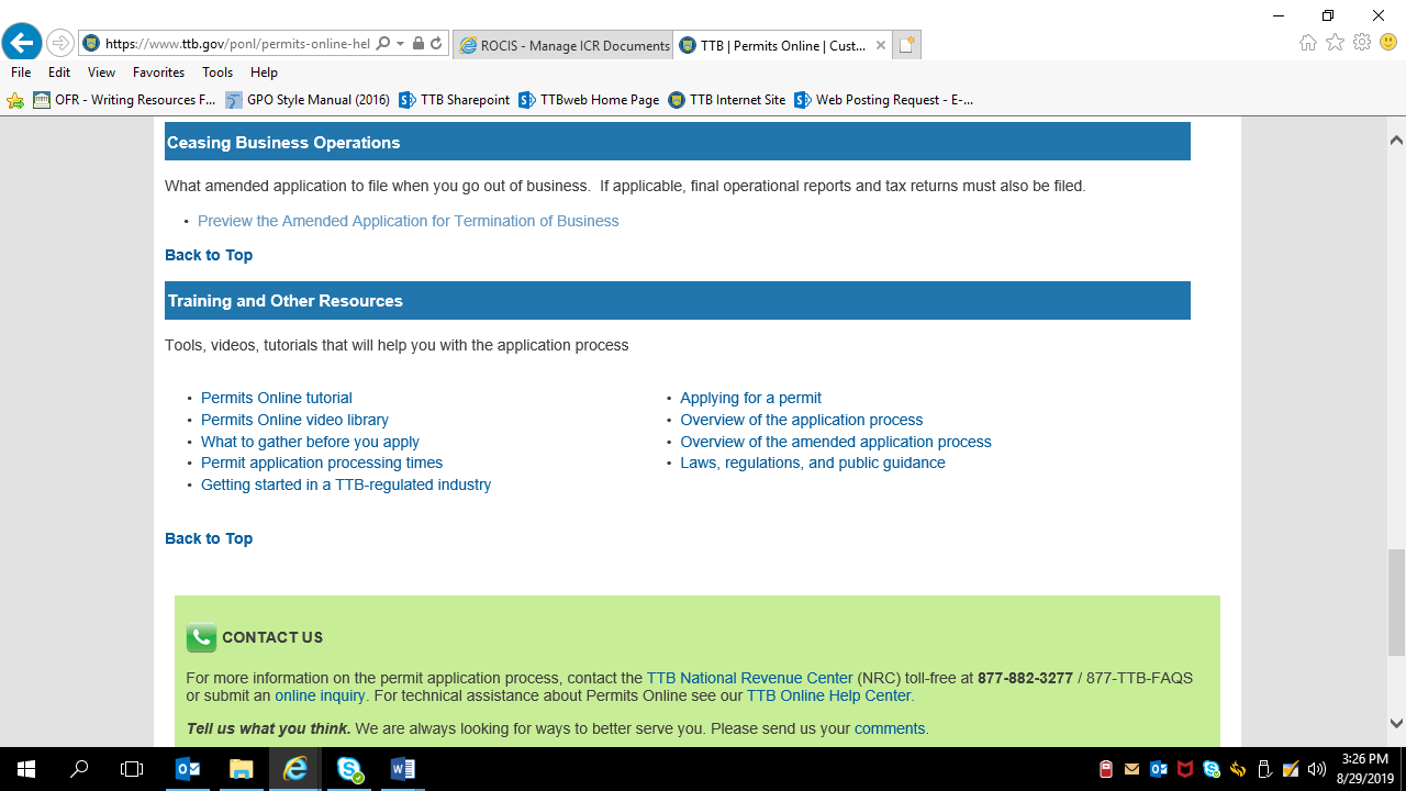 TTB Website -- Permits Online Help Center