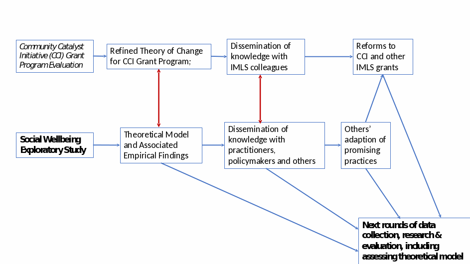 This research is intended to further the national dialogue between IMLS and community leaders and is also consistent with IMLS’s previous and current work in the area of community engagement, and will further that work by: 1) providing a more nuanced understanding of economic and social wellbeing that can inform both IMLS decision-making and that of library and museum directors; 2) building on the concept of “community catalysts” by focusing library and museum directors on the specific features of their social and economic context and how those should inform their practice; 3) providing benchmarks and a refined theory of change regarding community wellbeing and guidance that will be refined through further research and professional practice in IMLS; and 4) empowering localized action by museums and libraries as well as their partners to build upon the study’s finding further within their unique community contexts.