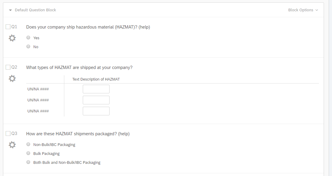 Form 1 PHMSA Data Collection Questionnaire Screenshots