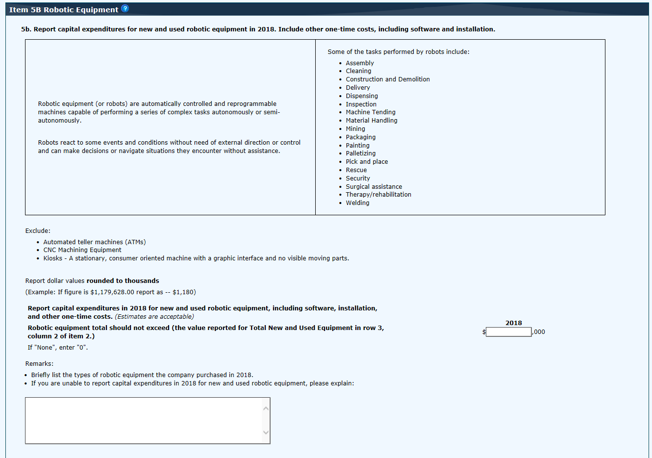 (If the respondent reported a dollar amount): I see that you provided $ ___ dollar amount for this response. Can you provide me with examples of the specific robotic equipment you were thinking of in your response?