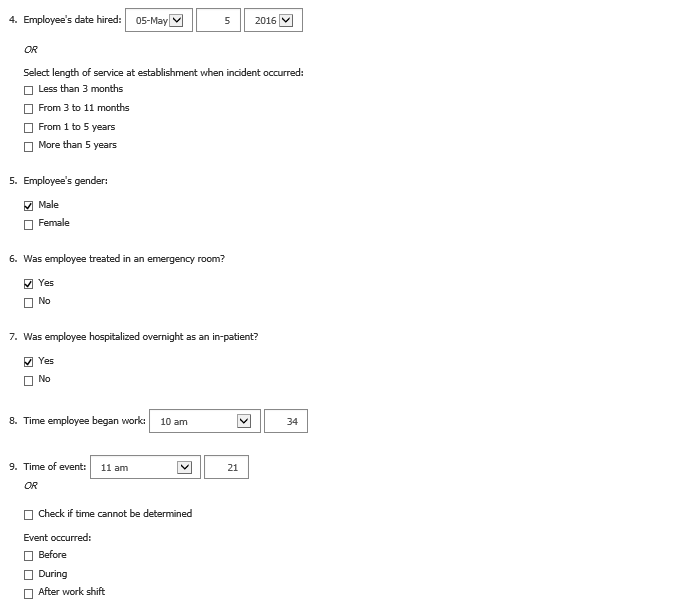 Alternative section 3 and case screen for if establishment has to report case details for days of job transfer or restriction cases in addition to their days away from work cases: