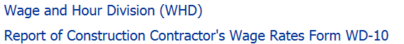 Form WD-10 Davis Bacon Wage Survey: Construction Contractor Wage Ra