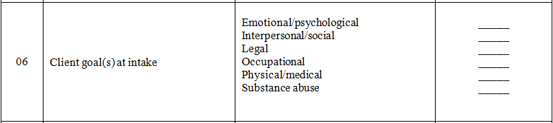 Indicate the number of new and continuing clients, both primary and secondary, with goals that were identified at intake in each given service category. Include all categories that apply. These counts may be duplicated if multiple client goals were identified.