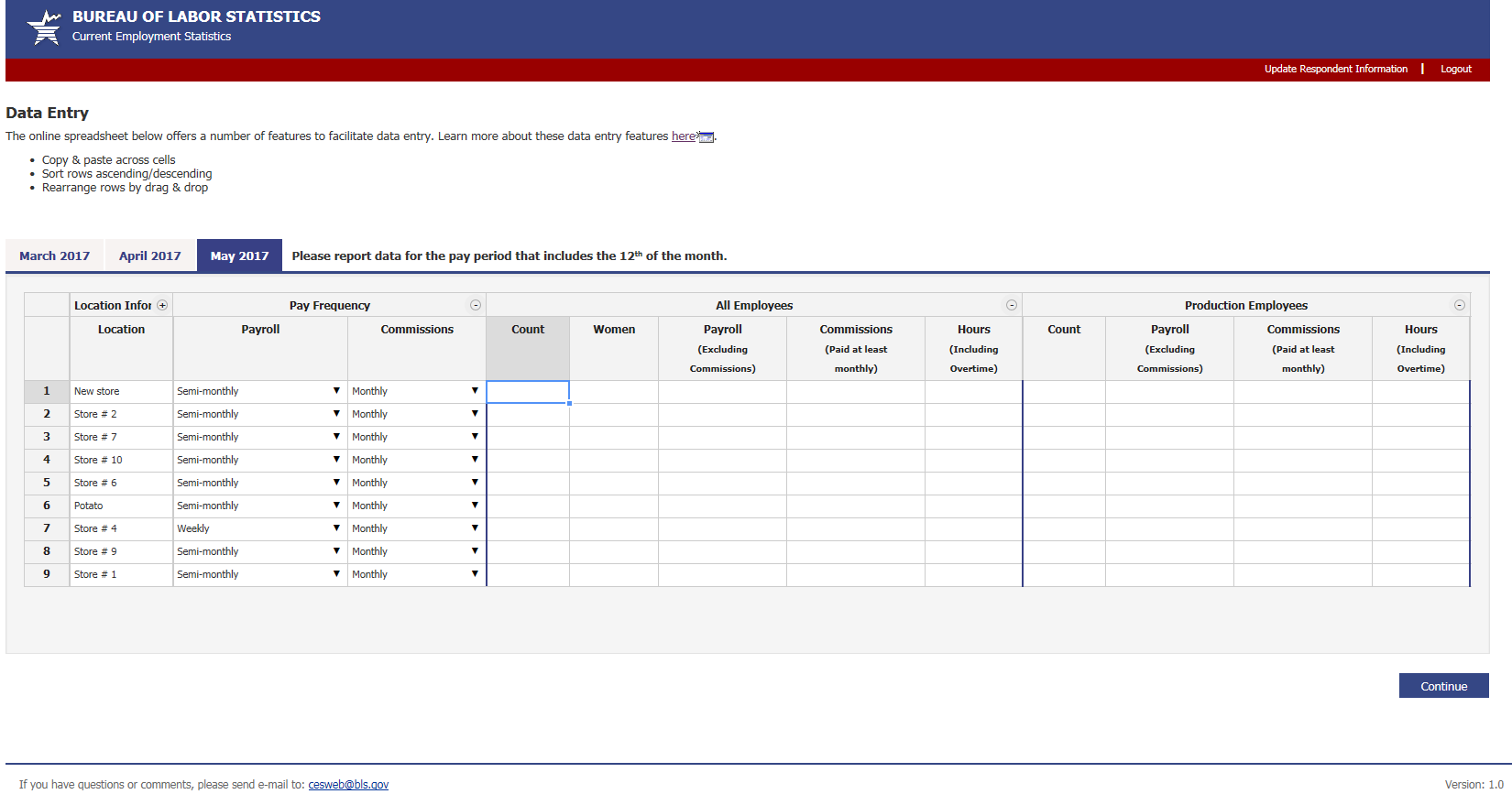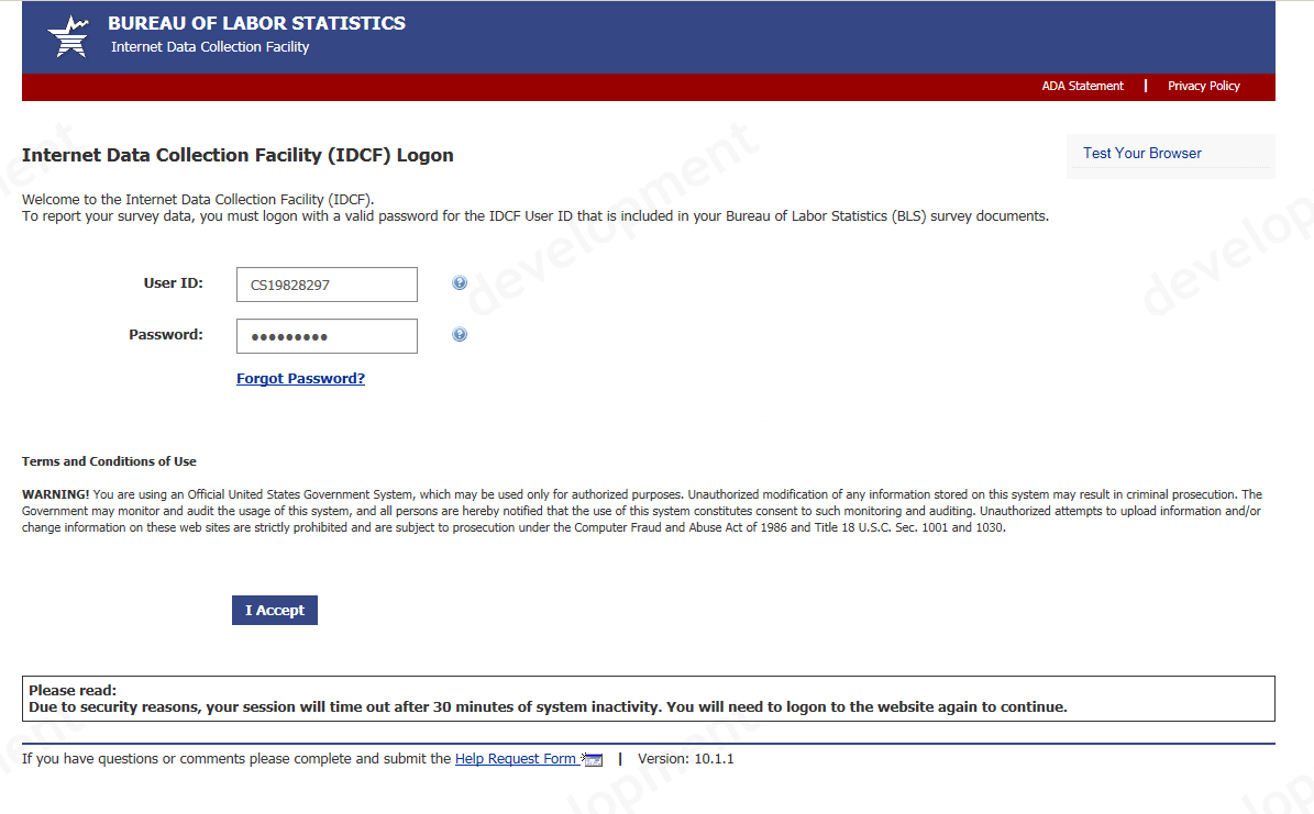 This report is authorized by law 29 U.S.C.2. We request your cooperation to make the results of this survey comprehensive, accurate, and timely. The Bureau of Labor Statistics, its employees, agents, and partner statistical agencies, will use the information you provide for statistical purposes only and will hold the information in confidence to the full extent permitted by law. In accordance with the Confidential Information Protection and Statistical Efficiency Act of 2002 (Title 5 of Public Law 107-347) and other applicable Federal laws, your responses will not be disclosed in identifiable form without your informed consent. Per the Federal Cybersecurity Enhancement Act of 2015, Federal information systems are protected from malicious activities through cybersecurity screening of transmitted data.