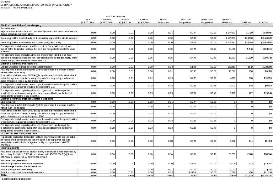 16 Refer to Table 5 for EPA’s estimate of the adoption rate for electronic manifesting.