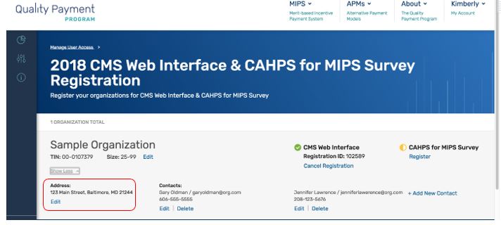 “You can modify information for a group with an existing registration for the CMS Web Interface and/or CAHPS for MIPS survey for performance period 2018 at any time before the registration period closes on June 30, 2018 at 11:59pm EDT. You may need to modify your information for any of the following reasons: