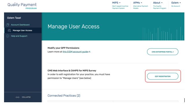 Under “Modify Information for a Group with an Existing Registration for the CMS Web Interface and/or CAHPS for MIPS Survey” section (such section specified on page 21, particularly Step 6:
