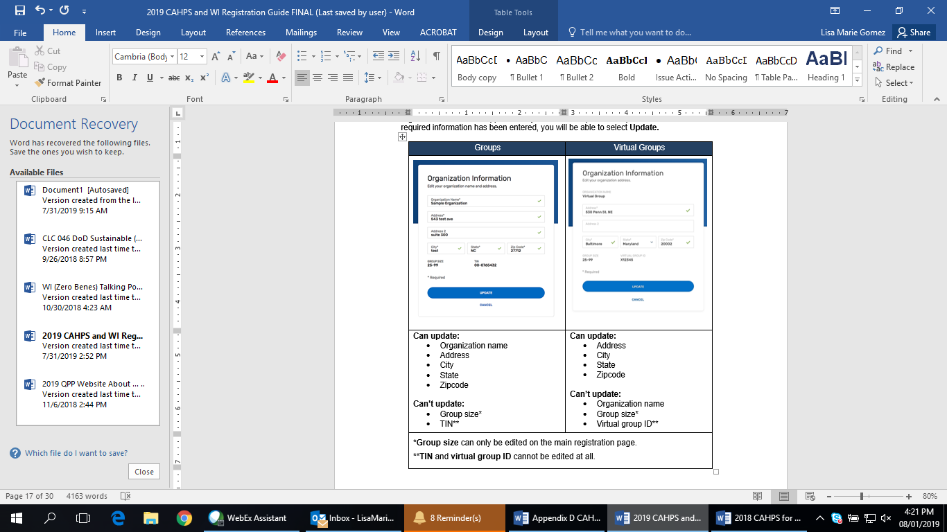 Moved the definition of the term “group” from the “Who can’t register?” subsection in the 2018 Guide to the “Who needs to register?” subsection in the 2019 Guide. Added the definition of the term “virtual group” to the 2019 Guide.
