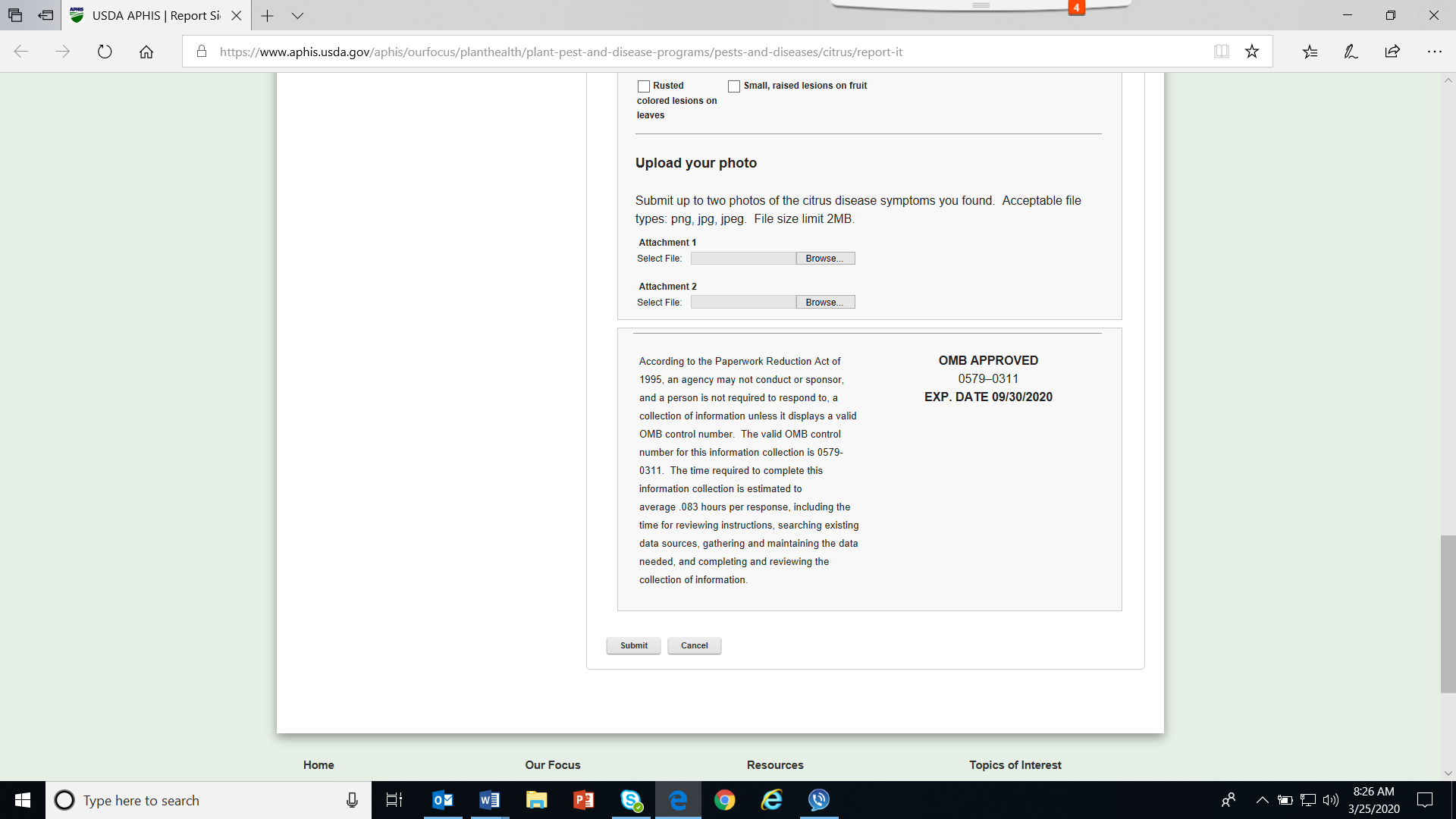 Pest Reporting Form 1: Citrus Disease