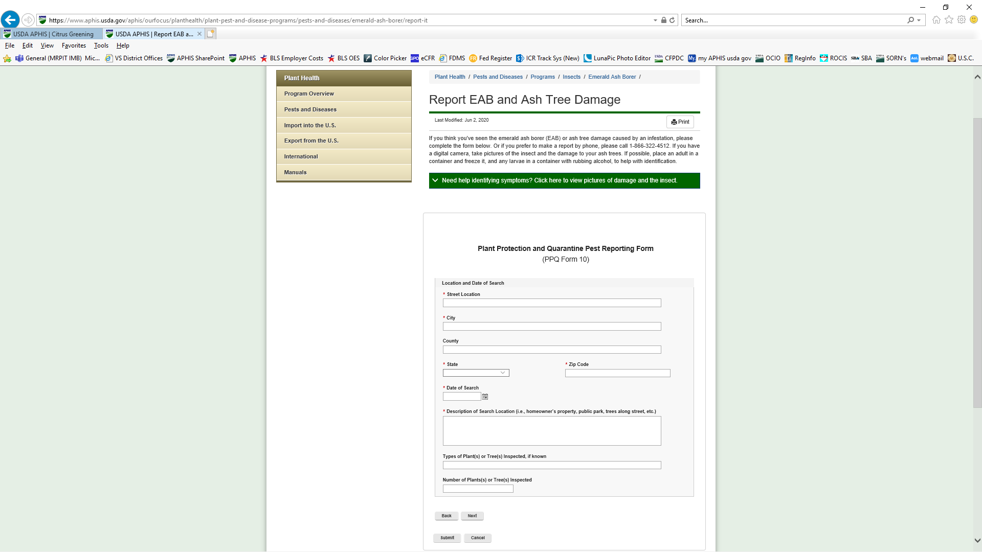 Pest Reporting Form 3: Emerald Ash Borer