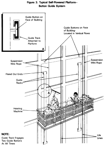 (2) Guide buttons shall be located horizontally on the building face so as to allow engagement of each of the guide tracks mounted on the platform.