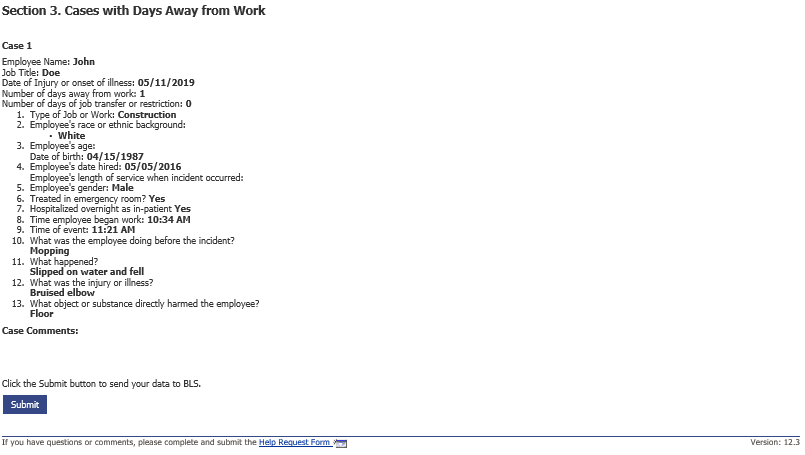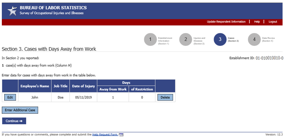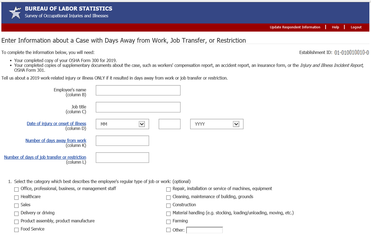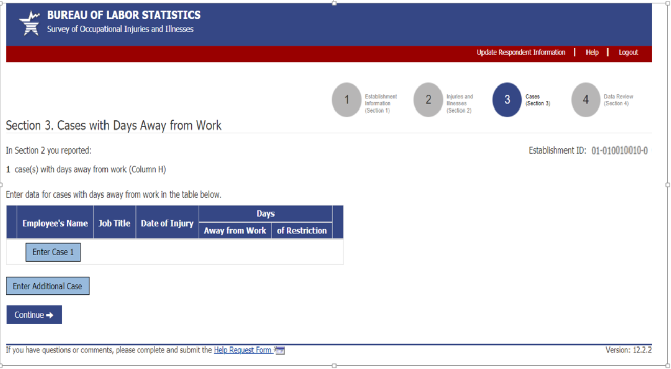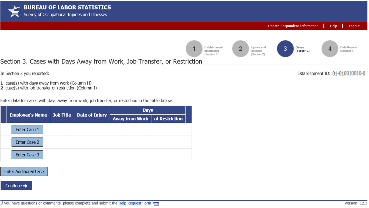 Alternative section 3 and case screen for if establishment has to report case details for days of job transfer or restriction cases in addition to their days away from work cases: