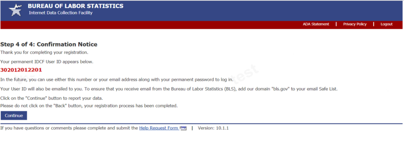 After submitting the help request, the user will return to the section they are on and press “Save and Continue” to proceed through the survey.