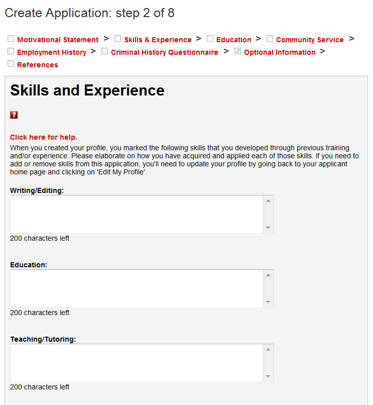 AmeriCorps NCCC Team Leader applicants complete the below online questions when submitting their general AmeriCorps application (above) to an AmeriCorps NCCC Team Leader position posting:
