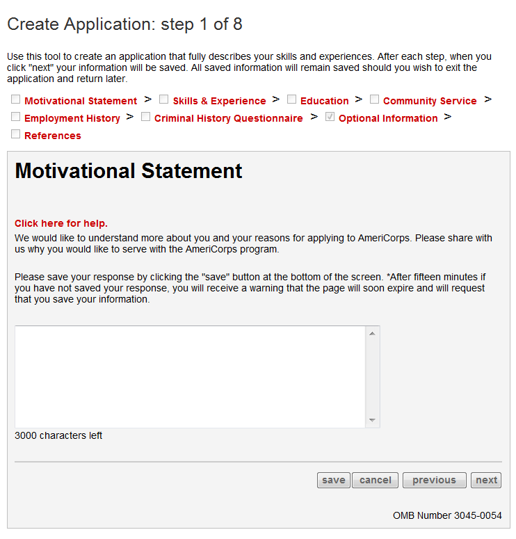 When the reference clicks on the link in the above email, it brings them to the page for completing the reference form within the My AmeriCorps Portal.