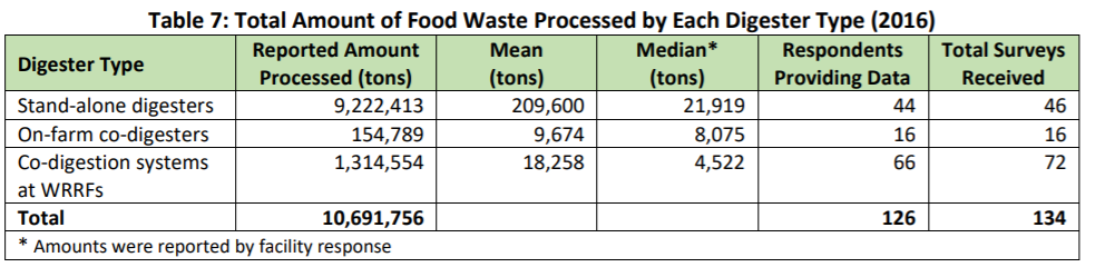 Food Waste Processed: refers to the actual amount of food waste that is processed by an AD facility for the specific year of the survey