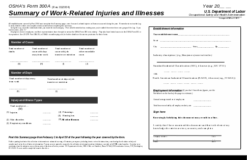 : Refer to your establishment’s OSHA Forms for Recording Work-Related Injuries and Illnesses. Copies of these forms were sent to you in late 2019. Form 300A from that mailing is shown immediately below.