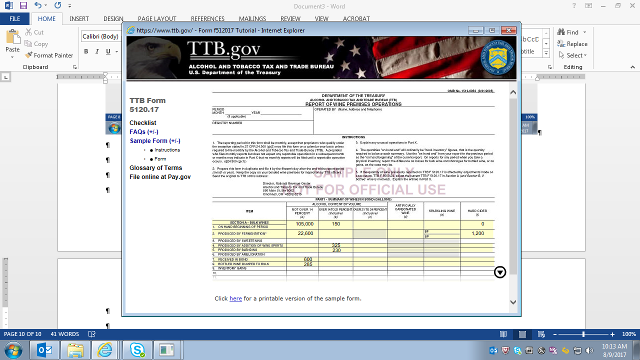 Tutorial (Instructions) for TTB F 5120.17, Report of Wine Premises Operations