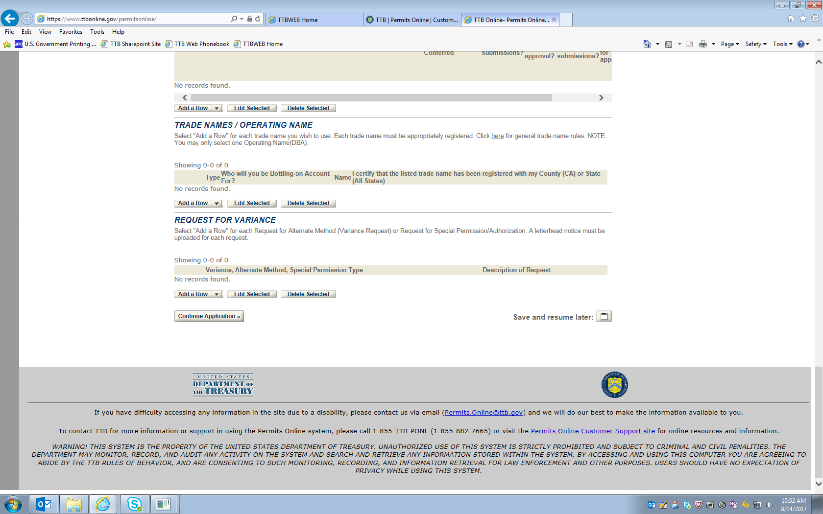 Permits Online (PONL) Original DSP Application Screen Shots