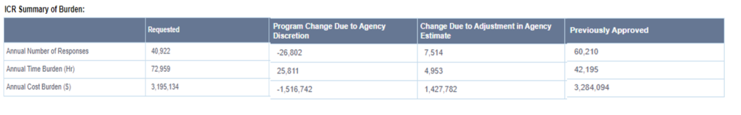 Changes in responses and burden hours