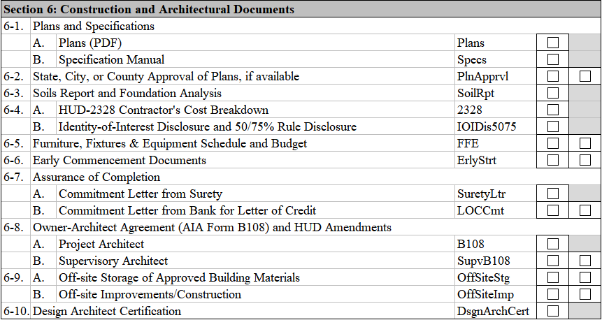 New Construction and Substantial Rehabilitation Checklists – Sections 221(d)(4), 220, 231, and 241(a)