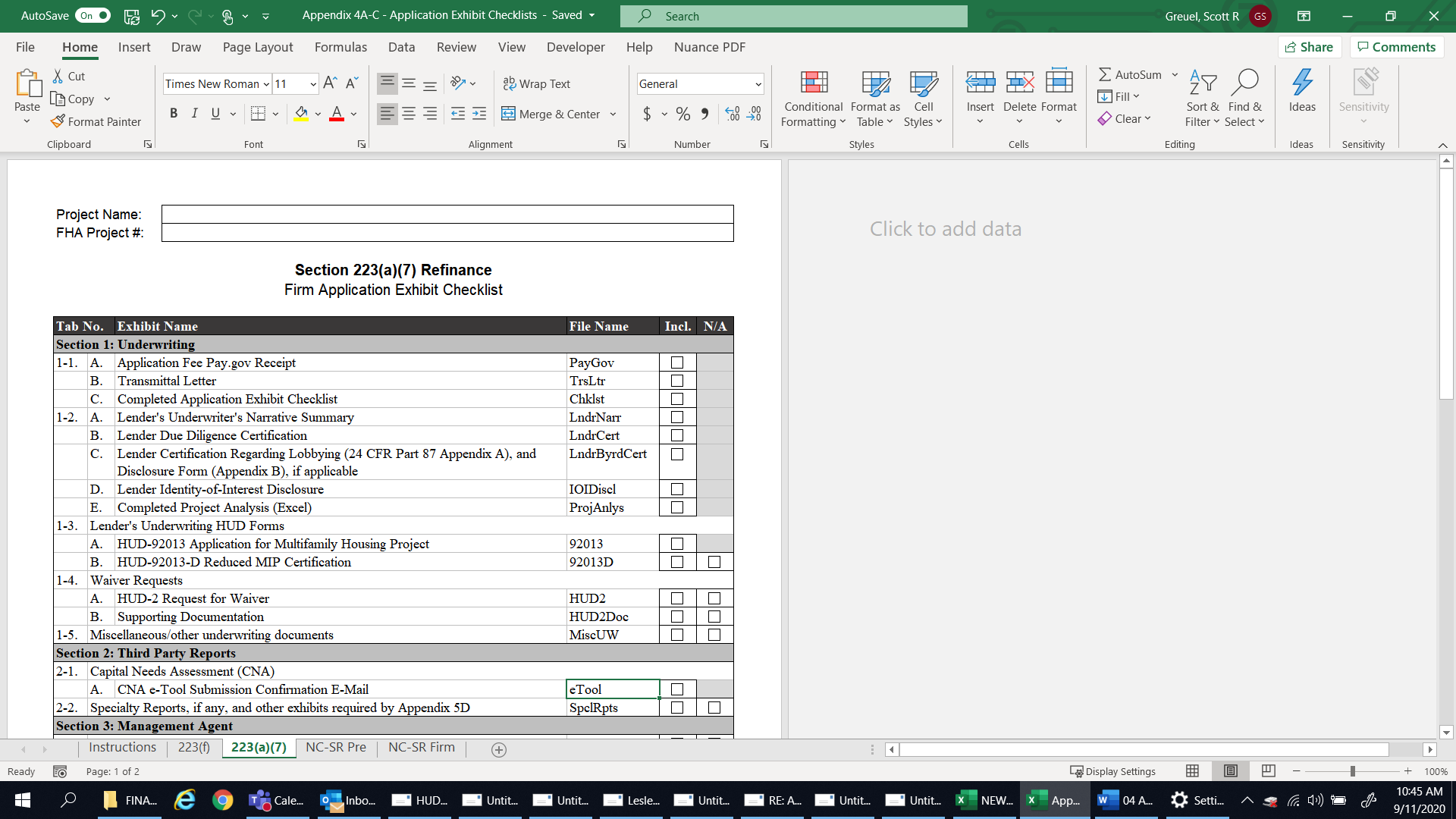 Below in each section are screenshot of the checklist. Microsoft Excel versions of the below application checklists can be downloaded at: https://www.hud.gov/program_offices/administration/hudclips/guidebooks/hsg-GB4430
