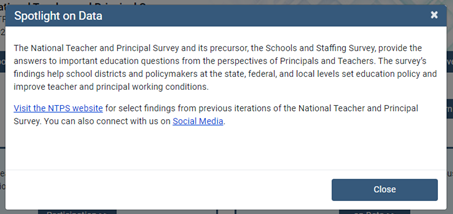 Spotlight on Data is a modal pop-up that will appear over the Resources page.