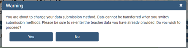 Clicking on the “Upload an Excel File” directs the respondent to the Upload File page. If they have entered teacher information, they receive the following warning message: