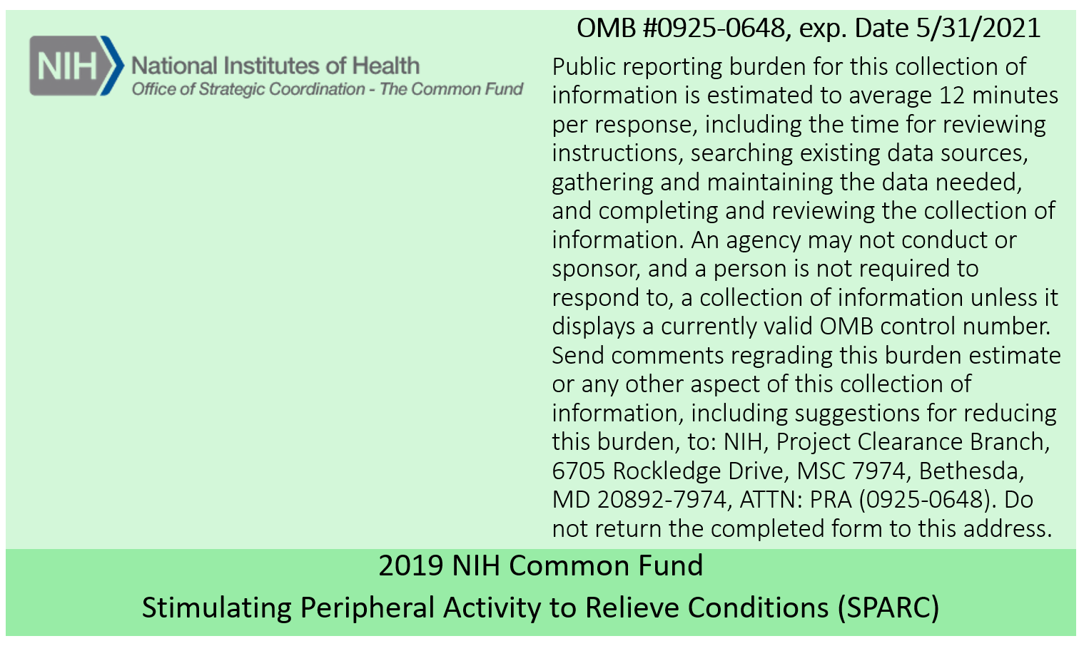 ⚠️ Notice: This form may be outdated. More recent filings and information on OMB 0925-0648 can be found here: