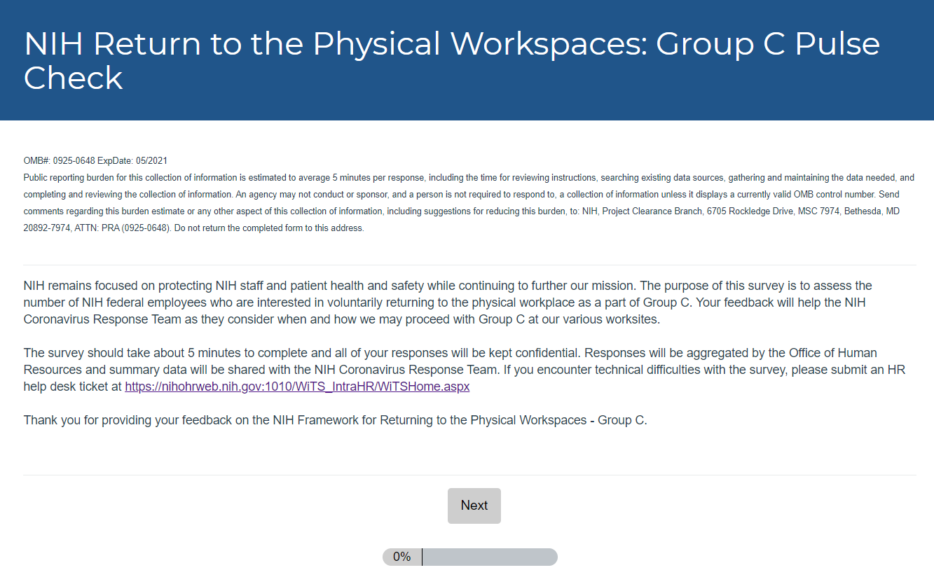 1 NIH Return to Physical Workspaces Group C Pulse Check